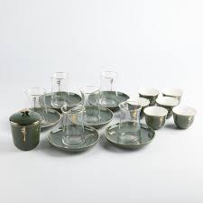Liqaa Tea Set (19-Pc) Olive Green & Gold