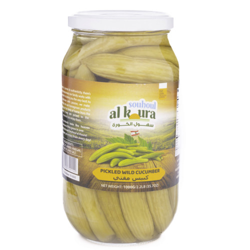 The Souhoul Pickled Cucumber 1000g (also known as Souhoul Al Koura Pickled Wild Cucumber 1000g) is a jar of authentic, crunchy Lebanese-style pickles prized for their strong tangy and sour flavor.