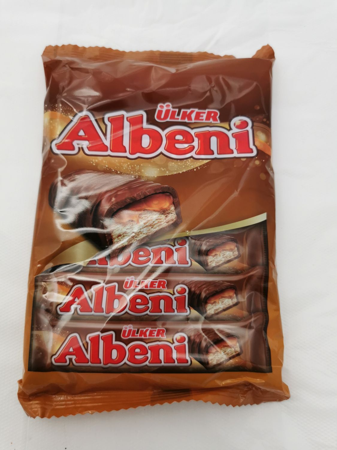 Ülker Albeni is a popular Turkish snack brand known for its chocolate-covered bars with caramel and biscuit. While the classic Albeni comes in a bar format, a "balls" version is also produced. The 40g package size is a common individual serving.