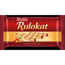 The product Ulker Rulokat 150 gr is a bag of wafer rolls filled with a hazelnut cream. Ulker, a large Turkish food manufacturer, produces these popular snacks. The 150g bag contains multiple wafer rolls, often packaged in smaller portions inside.