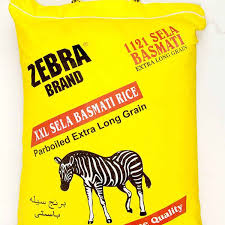 Zebra Sella Basmati Rice is an extra-long grain, parboiled (known as "sella") rice sold by the brand Zebra. The 10-pound bag features a distinctive yellow color, which refers to the bag's design, not the rice itself. The rice is aromatic and retains its long, separate, and fluffy grain texture when cooked.